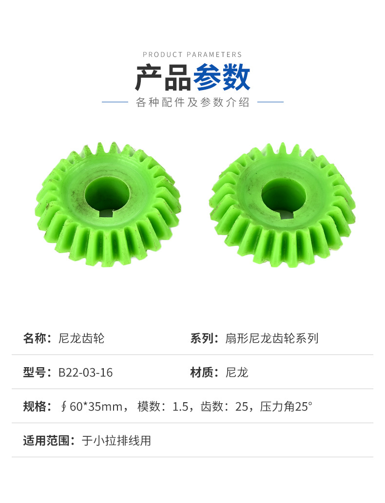 扇形尼龙齿轮绿色尼龙滑轮抗磨损高精密螺旋齿轮小拉排线工业配件